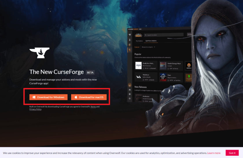 ソフトは、CurseForgeのサイト上層にある「Get Desktop」に移動することでインストーラーをダウンロードしてくることできます。