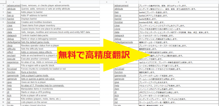 下の画像の感じで、普通の関数として使えば、翻訳してくれます。一気に下までやるとサーバーに負荷がかかるので、10個ずつなどに分けて下までやることを推奨します。