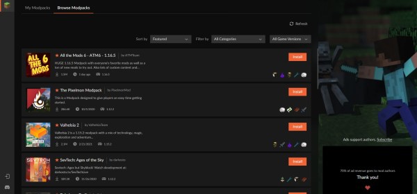 今回紹介するのは、ボタン一つで、数百のmodを一瞬で入れてたり、いつものマイクラとは違ったワールドで遊べる、CurseForgeです。